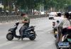 在鄭州市花園路上,一些電動(dòng)車駛上了機(jī)動(dòng)車道(7月9日攝)。 新華社記者 李安 攝 -