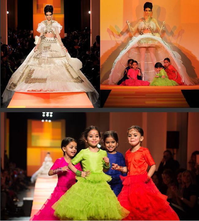 日前,高緹耶(Jean Paul Gaultier)突破傳統(tǒng)的推出童裝的高級(jí)定制服系列,靈感是來(lái)自2013年春季女裝高級(jí)定制服的印度風(fēng)格。以絲綢與紗裙為主要材質(zhì),搭配上Swarovski水晶,制作成短袖長(zhǎng)裙的高級(jí)服,共有米白色和桃紅兩色,每種顏色限量90件,尺寸從4歲到14歲,預(yù)計(jì)于今年的圣誕節(jié)上市,售價(jià)1200美元。