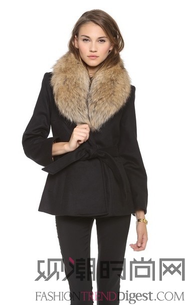 alice + olivia皮毛大衣,996美元。可拆卸的皮毛衣領(lǐng)為這款羊毛開司米羊絨大衣帶來華美外觀。包邊按扣收緊衣襟,同質(zhì)地腰帶凸顯身形的曲線,奢華的都市女郎愛時(shí)尚,這款短款外套絕對(duì)讓你在冬季即保暖又有型。