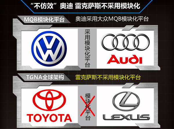 對(duì)于雷克薩斯車型,錢國(guó)豪透露:“一個(gè)平臺(tái)和一款發(fā)動(dòng)機(jī)適應(yīng)所有車型顯然是會(huì)出現(xiàn)問(wèn)題的,雷克薩斯所生產(chǎn)的發(fā)動(dòng)機(jī)將針對(duì)不同車型,”因此將形成雷克薩斯每款車型獨(dú)有的專屬性,F(xiàn)階段大眾集團(tuán)所采用的MQB模塊化平臺(tái),可通過(guò)發(fā)動(dòng)機(jī)模塊位置固定的基礎(chǔ)上,對(duì)軸距和車長(zhǎng)等尺寸進(jìn)行改變,從而實(shí)現(xiàn)模塊化平臺(tái)極強(qiáng)的衍生性、便利性以及成本優(yōu)勢(shì)等。奧迪多款車型便與大眾實(shí)現(xiàn)了平臺(tái)、動(dòng)力總成的共享。
