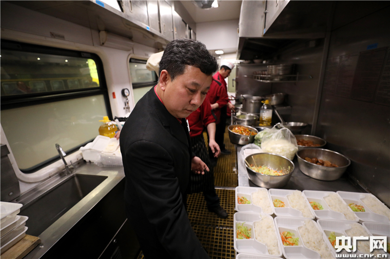 為旅客準備湯圓的是后廚的4位廚師,晚會一開始,幾臺電磁灶就齊開火,湯圓下鍋,10分鐘后,一碗碗熱騰騰的湯圓端上了旅客的餐桌!吧介、巧克力味、芝麻五仁……今晚餐車內(nèi)準備了20斤不同口味的湯圓,滿足旅客的多樣飲食要求!辈蛙囬L王立才曾是北京客運段京藏線上的一名老餐車長,見證了由北京西開往拉薩的第一趟列車。今年已經(jīng)是他在列車上度過的第8個元宵節(jié)了。