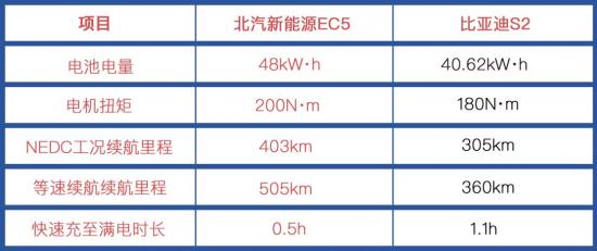 而比亞迪S2的電池電量也要更小,僅有40.62kW·h,續(xù)航能力也更保守,NEDC工況續(xù)航僅為305km,與北汽新能源EC5相差近100km,等速續(xù)航也僅有360km。