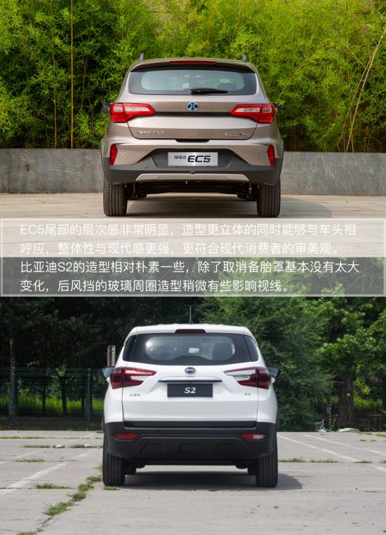 北汽新能源EC5的車身側(cè)面保持了相對硬朗的造型,凌厲且粗壯的腰線以一個非常流暢的曲線一直向后延伸至尾燈,立體感很強(qiáng)。比亞迪S2則顯得更加圓潤一些,沒有太多的棱角,相比EC5來看沒有太強(qiáng)的現(xiàn)代感,更加符合一些中庸的審美。