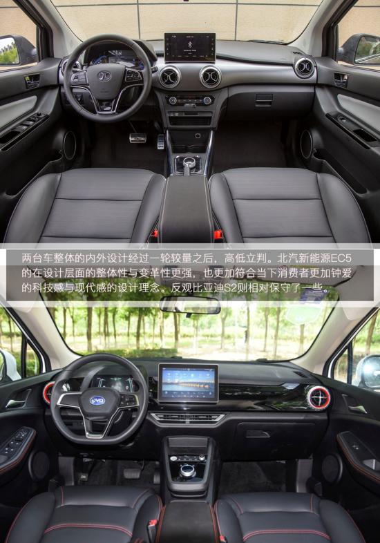 兩臺車在整體的造型上分屬不同陣營。EC5更具科技感與現(xiàn)代感,也更符合當(dāng)下的主流審美。而比亞迪S2的設(shè)計雖然也在家族化設(shè)計理念的體系內(nèi),但相對保守中庸了一些,與元新能源相比變化不大,稍微欠缺一些新意。內(nèi)飾部分兩者給人的直觀感覺,也是截然不同的兩種風(fēng)格。