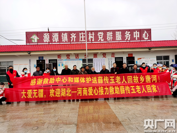 央廣網(wǎng)南陽(yáng)11月27日消息(記者 彭華 通訊員 王永閣)11月23日下午,受唐河縣源潭鎮(zhèn)黨委書記曲向東、鎮(zhèn)長(zhǎng)白尊委托,源潭鎮(zhèn)黨委副書記范延輝和齊莊村負(fù)責(zé)人王海濤在高速收費(fèi)站口經(jīng)過(guò)漫長(zhǎng)而焦急的等待,終于等到了在外流浪多年的薛傳玉老人,以及從湖北省荊州市出發(fā)驅(qū)車5個(gè)小時(shí)護(hù)送老人回鄉(xiāng)的荊州市救助中心工作人員和當(dāng)?shù)孛襟w記者。