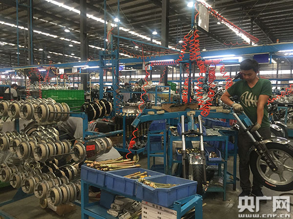而在葉縣產(chǎn)業(yè)集聚區(qū)內(nèi)的河南隆鑫機(jī)車有限公司,是全國(guó)三輪機(jī)車行業(yè)唯一一家上市企業(yè),擁有裝配流水線8條,整車生產(chǎn)能力50萬(wàn)臺(tái)。車間的崔大姐已經(jīng)在廠里工作一年多了,她是附近的村民,在沒有來(lái)這里工作之前,是一位家庭主婦,現(xiàn)在她主要負(fù)責(zé)給三輪車安裝暖風(fēng)機(jī),每個(gè)月的工資能拿到2000多元。