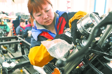 中廣網河南分網消息 據河南日報農村版報道:3月20日,孟州市西虢鎮(zhèn)的某三輪摩托有限公司總裝車間,工人們正在組裝三輪摩托車。近年來,通過招商引資,數十家企業(yè)入駐西虢鎮(zhèn),當地共有近1.5萬名農村勞動力實現(xiàn)了家門口就業(yè)。
