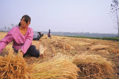 春姑娘在肥沃的黃土地里插上稻秧