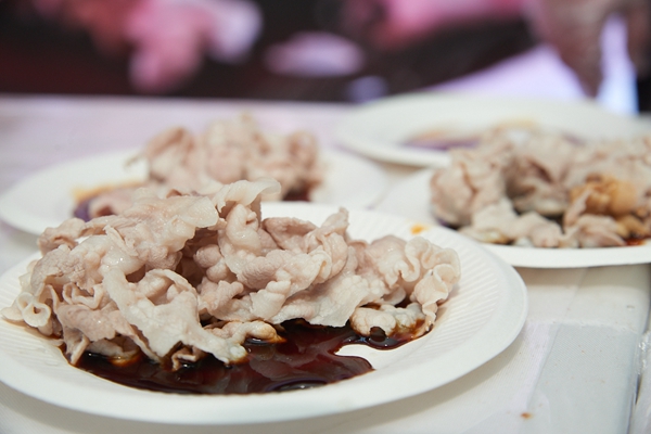 在年博會(huì)現(xiàn)場,廚師將一款名為“庖丁肉卷”的維他豬豬產(chǎn)品做了一道“原湯涮肉”直接用清水一涮蘸一點(diǎn)生抽,就美味無比。而且沒有血沫子,涮完了水還是清的。