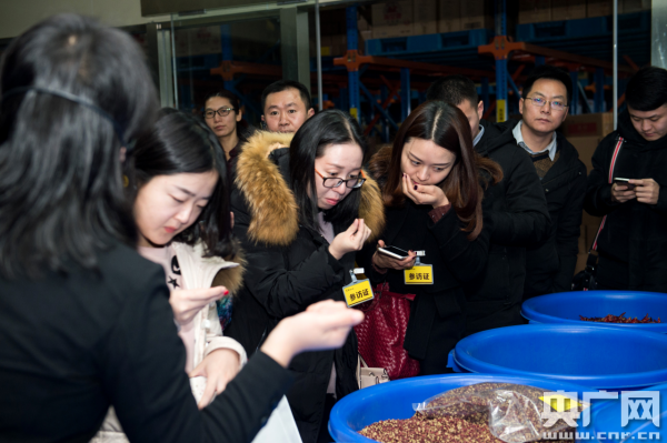 巴奴這3個(gè)極具現(xiàn)代化的中央廚房,供給著全國(guó)37家門店,每天數(shù)以萬計(jì)的食材由這里發(fā)出。(圖為工作人員向媒體介紹制作火鍋底料的食材)