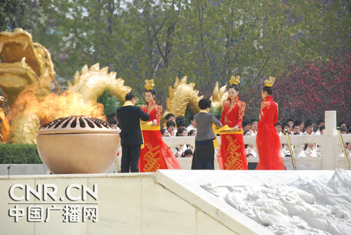 大典定于4月5日(農(nóng)歷三月初三)上午9:50在新鄭市黃帝故里景區(qū)舉行。沿承規(guī)制,共有九項儀程,分別為:盛世禮炮、敬獻花籃、凈手上香、行施拜禮、恭讀拜文、高唱頌歌、樂舞敬拜、祈福中華、天地人和。九項儀程的名稱雖與往年相同,但在具體實施上,將契合新變化,融入新內(nèi)涵,“樂舞敬拜”、“天地人和”等儀程都將有藝術(shù)創(chuàng)新。