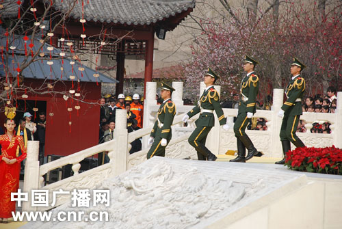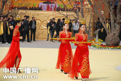 大典定于4月5日(農(nóng)歷三月初三)上午9:50在新鄭市黃帝故里景區(qū)舉行。沿承規(guī)制,共有九項儀程,分別為:盛世禮炮、敬獻花籃、凈手上香、行施拜禮、恭讀拜文、高唱頌歌、樂舞敬拜、祈福中華、天地人和。九項儀程的名稱雖與往年相同,但在具體實施上,將契合新變化,融入新內(nèi)涵,“樂舞敬拜”、“天地人和”等儀程都將有藝術(shù)創(chuàng)新。