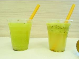 這個(gè)“檸檬水果原漿”究竟是什么水果的漿?加進(jìn)鮮榨果汁的作用是什么?記者來(lái)到這家果汁店,要了兩杯鮮榨獼猴桃汁。當(dāng)?shù)陠T按照以往的程序榨好了一杯加有“檸檬水果原漿”的果汁之后,記者要求在另外一杯中不要加除了水之外的任何東西。這樣,兩杯原料完全一致,只有添加物不同的獼猴桃汁就做好了。