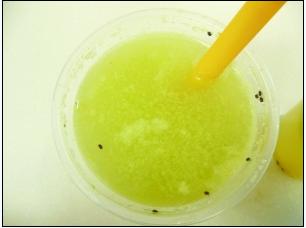有添加果汁:漂浮在上面的纖維呈泡沫狀,非常濃稠。