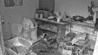 煮制假牛肉的簡易棚里環(huán)境又臟又差。 通訊員 喬君 攝