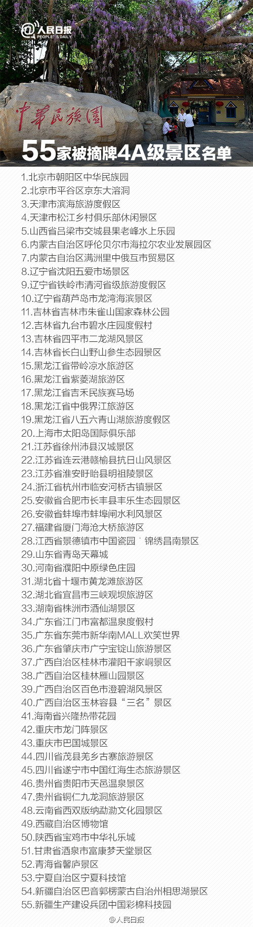 全國55家4A級景區(qū)被摘牌 湖北兩景區(qū)上榜