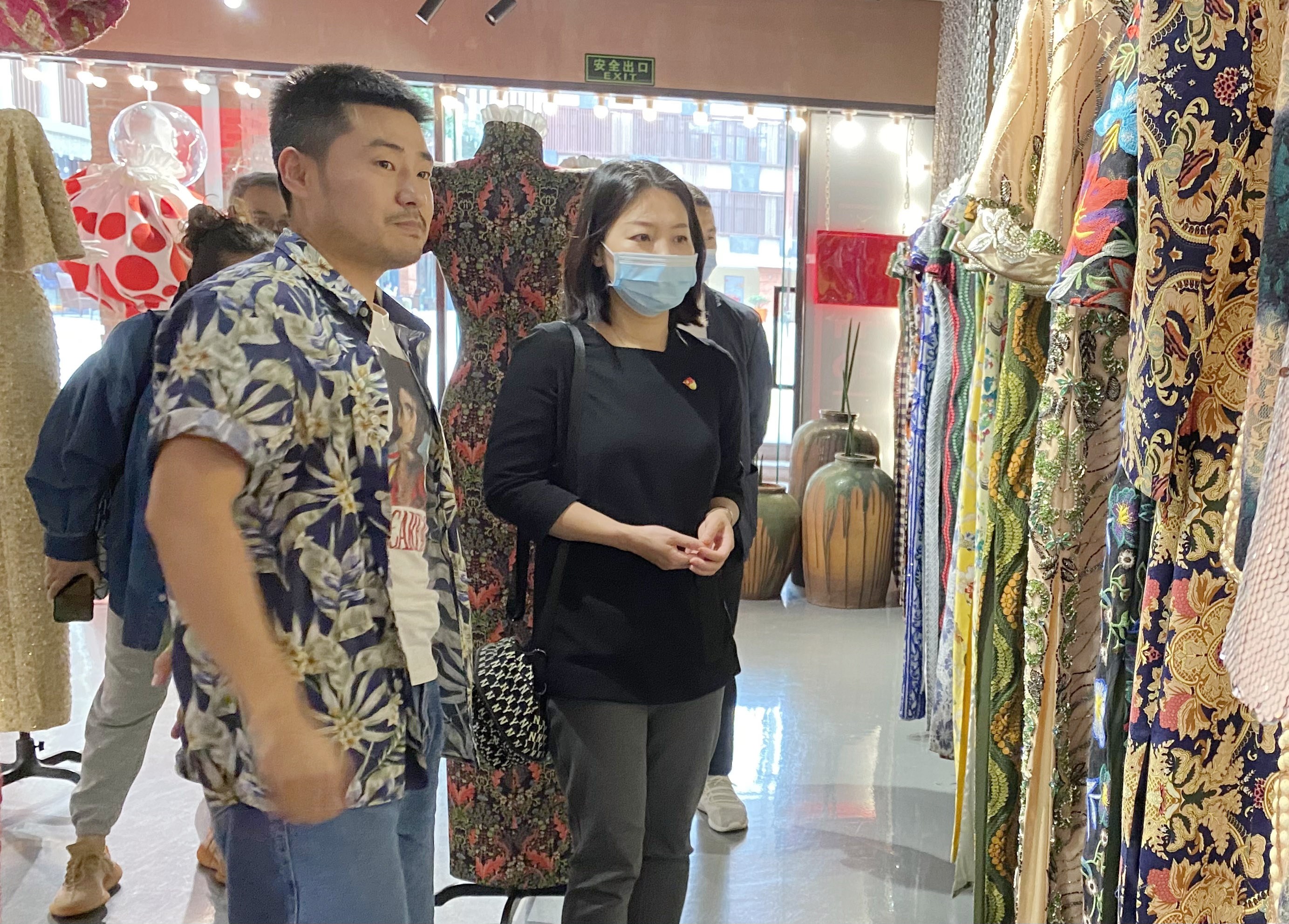 活動中,志愿服務隊先后走訪了紅T文創(chuàng)體驗中心、博看網(wǎng)、胡社光設計師工作室、多少生活館、私人定制服裝店“未解”和黨群活動共享空間等地,認真調(diào)研紅T創(chuàng)意園文創(chuàng)企業(yè)現(xiàn)狀、非遺融入產(chǎn)業(yè)發(fā)展情況。
