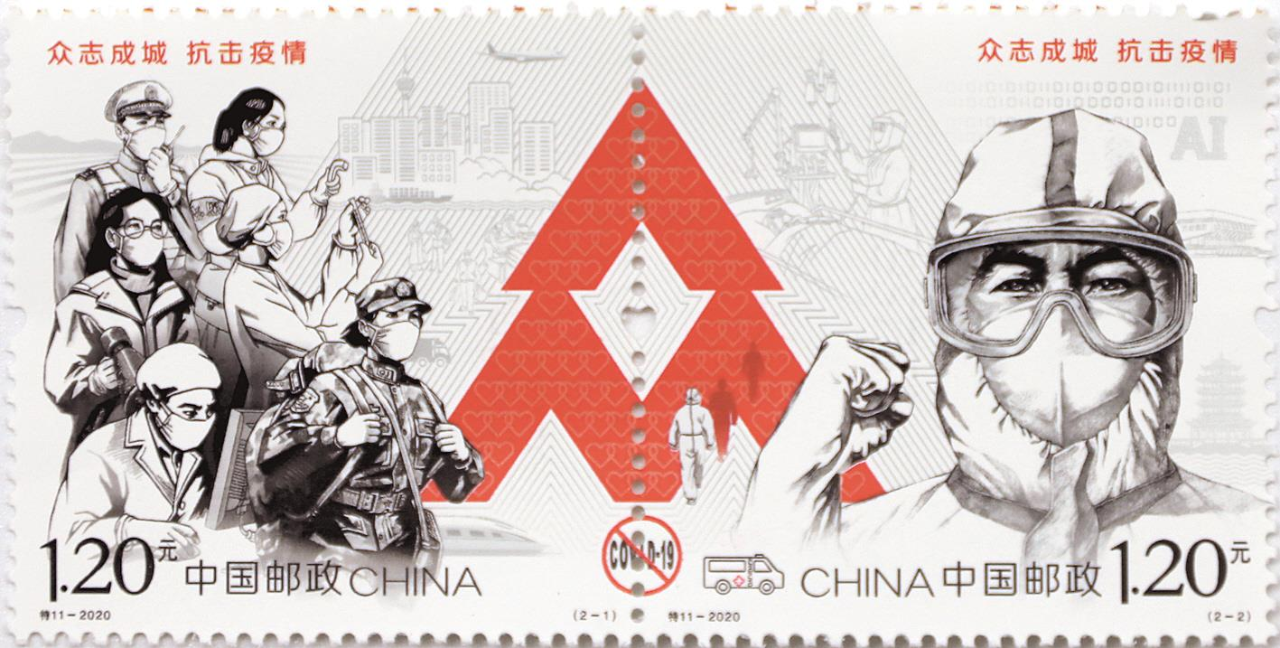 另外,十一屆三中全會召開、奧林匹克運動會、中國夢——國家富強(qiáng)系列郵票等重大事件、題材,濃縮在一枚枚郵票中,讓人眼前一亮。其中,中國郵政于2020年5月11日特別發(fā)行的《眾志成城 抗擊疫情》郵票1套2枚,采用連票形式,郵票圖案中“眾”字將兩枚郵票緊密連接,寓意著面對突發(fā)重大公共衛(wèi)生事件,在黨中央堅強(qiáng)領(lǐng)導(dǎo)下,全國上下凝聚起眾志成城、抗擊疫情的強(qiáng)大力量。