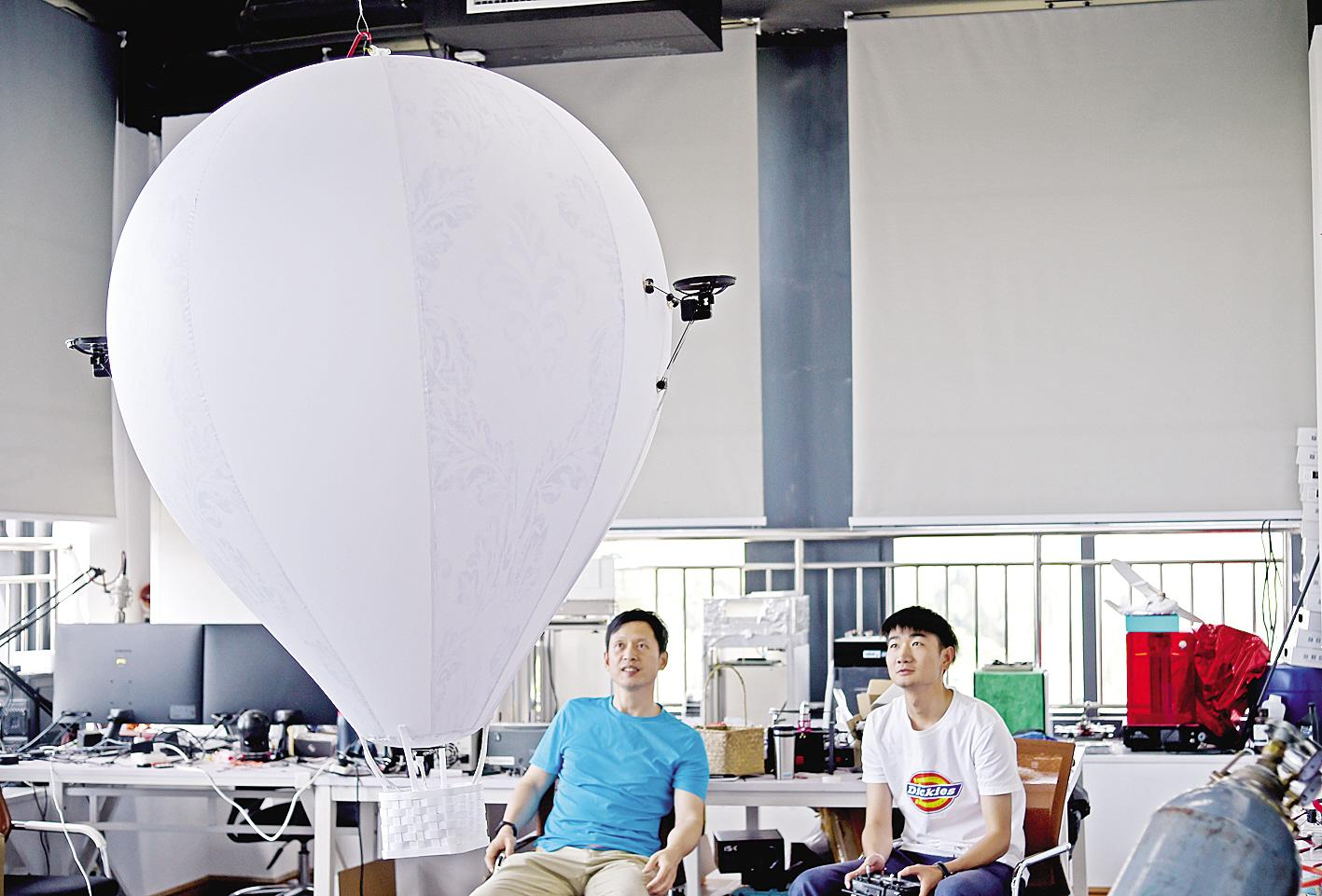 6月4日,在武漢市東西湖區(qū)金銀湖創(chuàng)新中心,湖北大秀智控科技發(fā)展有限公司工作人員正在調(diào)試最新研發(fā)的軟體無人機產(chǎn)品。