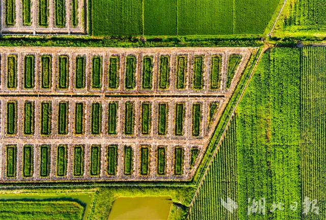 7月25日,俯瞰荊州市荊州區(qū)彌市鎮(zhèn)雙馬村雙柳樹稻蝦連作田,綠油油的稻田連接成片,構(gòu)成一幅美麗的自然景觀。目前,雙馬村4000多畝水旱田開始了“雙水雙綠”種養(yǎng)模式,以“蝦稻林”“蝦稻鱖”“茭蝦稻”等稻田綜合種養(yǎng)“升級版”,走現(xiàn)代農(nóng)業(yè)綠色高效發(fā)展之路。(視界網(wǎng)黃志剛攝)