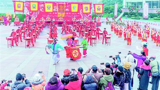 2月14日,2019年武漢市江漢區(qū)舞龍鑼鼓暨民俗表演大賽在西北湖廣場(chǎng)舉行;顒(dòng)分為群龍起舞拜大年、鑼鼓喧天賀新春、精致江漢迎軍運(yùn)3個(gè)章節(jié),22支比賽隊(duì)伍充滿激情的展演,將鬧新春、迎軍運(yùn)的氛圍推向高潮。 (湖北日?qǐng)?bào)全媒記者 梅濤 攝)