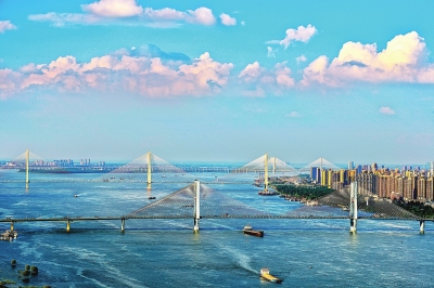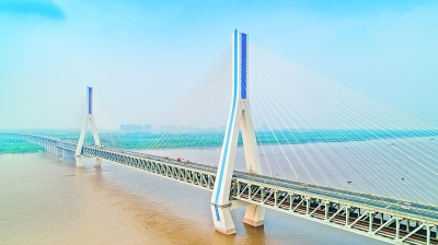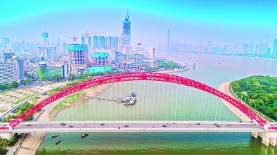 鸚鵡洲長江大橋呈現(xiàn)國際橘色調