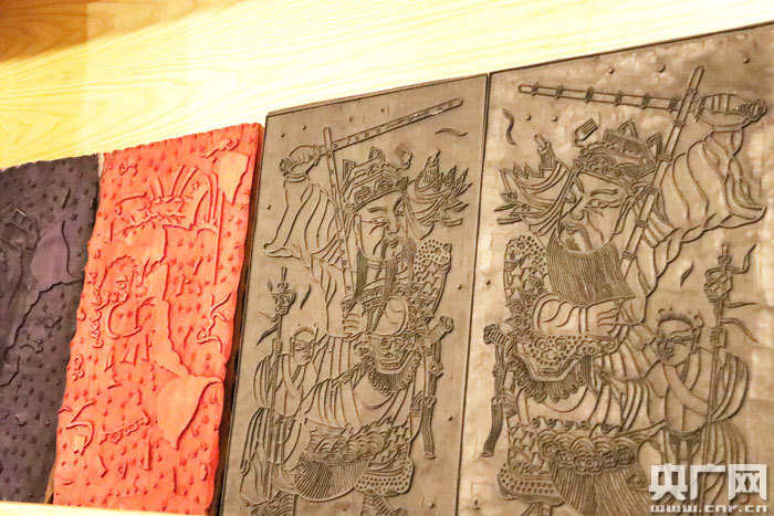 在老河口市博物館,當(dāng)記者一行匆匆趕到時,陳義文老先生已經(jīng)等候多時。在一張寬闊的桌案上面,擺放著雕版、刻刀和墨臺等工具。陳老先生告訴記者,木板年畫為套色年畫,分為起稿、刻線板、刻套色板和印刷四道工序。首先要將定好的稿子用白描的手法畫在紙上,接著將畫稿貼在刨平的木板上,用多種刻刀刻出線板,印出墨線畫樣。雕版是木版年畫制作過程中技術(shù)要求最高的一道工序,耗時長,雕刻者需要有足夠的耐心。隨后,要在墨線畫樣上點(diǎn)出搭配的色彩,按照不同的顏色刻出套色版;最后一步便是印刷,先印線版再印色版,每色套印后都要將畫取下晾至半干再印下一道顏色。