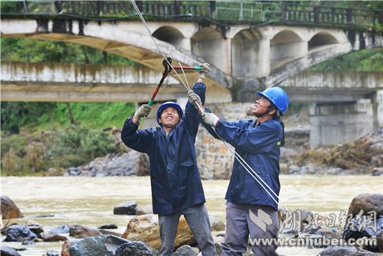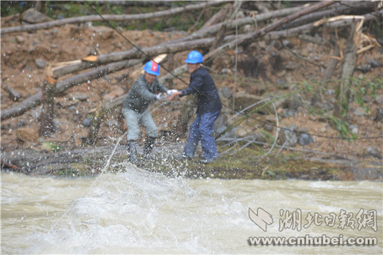 湖北日報網(wǎng)訊(全媒體記者李彥睿 通訊員何厚英)10月6日,為了14戶群眾恢復供電,國網(wǎng)恩施市供電公司屯堡供電所電力工人們在清江河畔,冒雨實施跨河電力搶險施工。