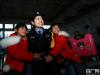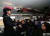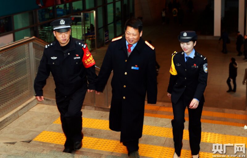 1月31日,楊越〔右〕和車站工作人員趕往站臺巡查。 -