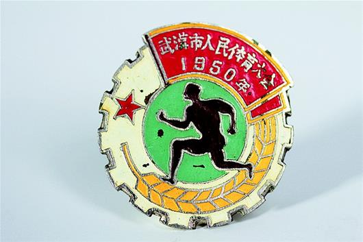 圖為:1950年武漢市人民體育大會徽章。