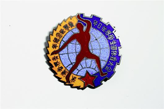 圖為:上世紀(jì)50年代初武漢各界青年紀(jì)念世界青年日世界學(xué)生周體育大會徽章。