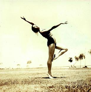 圖為:綠茵仙子。1958年夏,女體操運動員在東湖邊做徒手練習(xí),湖畔小白象雕塑依稀可見。