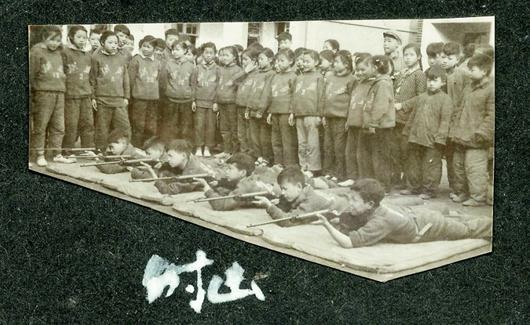 圖為:1956年,漢口洪益巷小學(xué)在校園內(nèi)開設(shè)射擊練習(xí)課程。