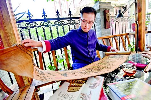 劉潔出生在湖南,白族人,家里長輩都擅長自己動手做東西。打小他看著大人們雕刻木頭,也忍不住拿起工具,坐在門檻上學(xué)著錘鑿,“沒少搞破壞,也沒少挨打!彼χf。19歲那年北漂,在京城一個偶然的機會接觸到面塑,從此沉迷其中。同事們下班打游戲,他就一個人拿著面團學(xué)著捏塑各種物件,不知不覺就是一整個通宵。此后,他開始拜師學(xué)藝,在面塑的路上不斷鉆研!懊嫠茉谖覀儑,有1300多年的歷史!彼湴恋亟榻B,面塑從面粉篩選、釀制成面團、捏塑成作品,這個工藝過程,被一代代人傳承了千年,“到了我這代,我們更有責(zé)任讓這門古老的技藝延續(xù)和傳承,畢竟現(xiàn)在面塑的制作工藝更好,藝術(shù)水平更高,經(jīng)驗更豐富,還可以長期保存,可以說,創(chuàng)作上擁有無限可能!薄拔蚁M业拿考髌,看到的人都能感受到人物的個性,他們都有靈魂!彼f,在著色上,自己特別避免使用鮮艷猛烈的色彩,“每種顏色都是混合色,降低明度,讓色彩更質(zhì)樸,更沉穩(wěn)。”“以前有人見到我,直接喊‘泥人張’,我趕緊說不是不是,這是面塑。”他笑笑說,這說明面塑仍需要被人們了解,而他這代傳人正在努力塑造武漢面塑的品牌,“武漢面塑融合了多方技巧,兼具南北之長,以手法精細(xì)、風(fēng)格靈動、底蘊渾厚為特色!彼f,自己會在這條路上一直探索下去,這門藝術(shù)樂趣無窮。