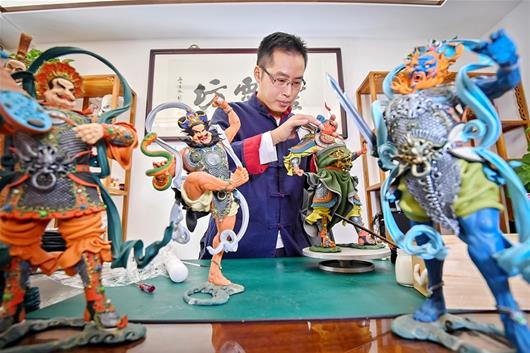 今年 37歲的劉潔,有一雙巧手。他制作的面塑,精細(xì),精致,精美。無論傳統(tǒng)題材的關(guān)公或四大天王,還是李白、屈原或者動漫人物,都有讓人一眼驚艷的效果。