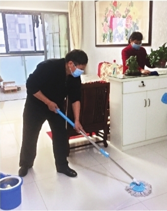 “家族成員之間每天打電話互報平安,互相鼓勵!22日下午,漢陽區(qū)建橋街鐘家村社區(qū)老黨員謝幫惠報完平安,和老伴一起做起了清潔!拔覀兂鲩T戴口罩、勤洗手,經常開門開窗通風。做好清潔,是對自己負責,也是對別人負責!苯衲70歲的謝幫惠住在16樓,平時家里只有他和老伴。長江日報記者走進他家時,他正和老伴用消毒液擦桌子、拖地板,屋里彌漫著一股消毒水的氣味。