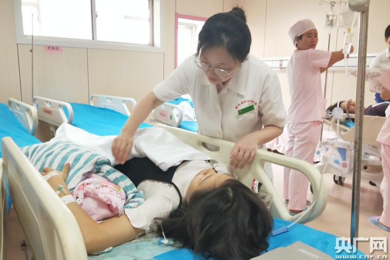 圖為尹主任在觀察室檢查產(chǎn)婦產(chǎn)后恢復(fù)情況(央廣網(wǎng)記者 黃炎秋 攝)