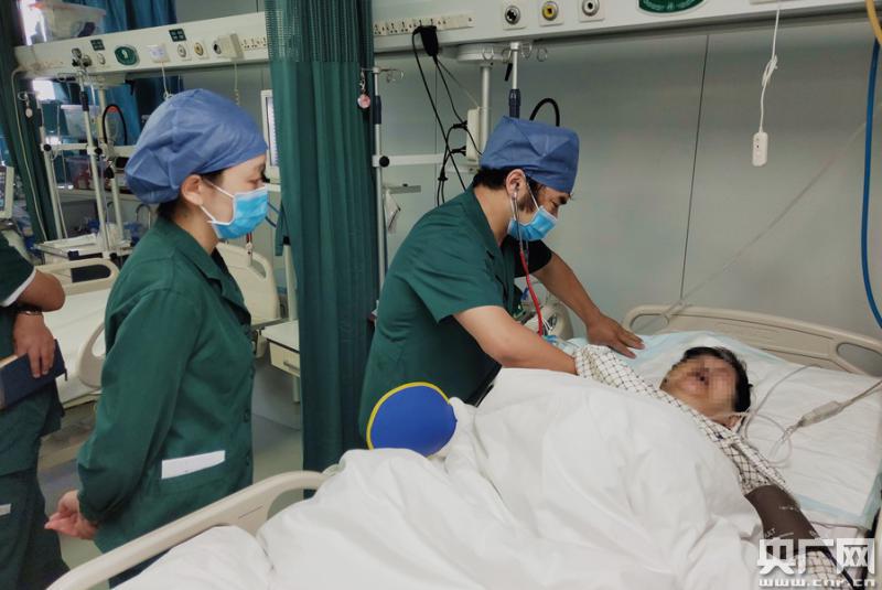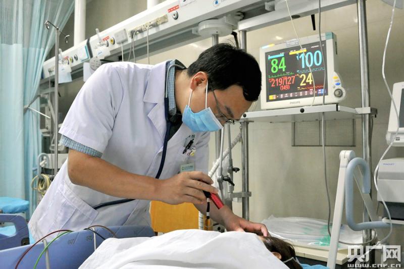 圖為羅金龍醫(yī)生正在急診科檢查昏迷患者(央廣網(wǎng)發(fā) 通訊員陶繼東 攝)