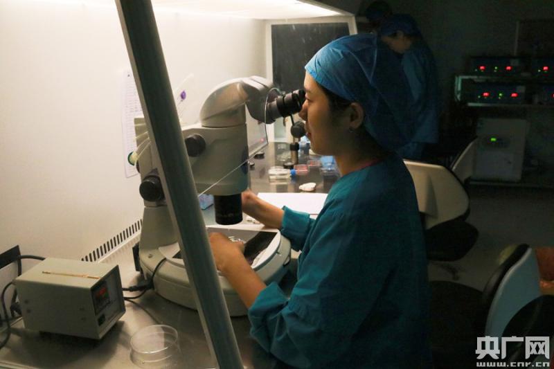 圖為張怡醫(yī)生正在進(jìn)行試管嬰兒胚胎培養(yǎng)(央廣網(wǎng)記者 黃炎秋 攝)