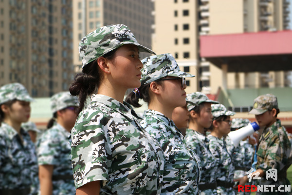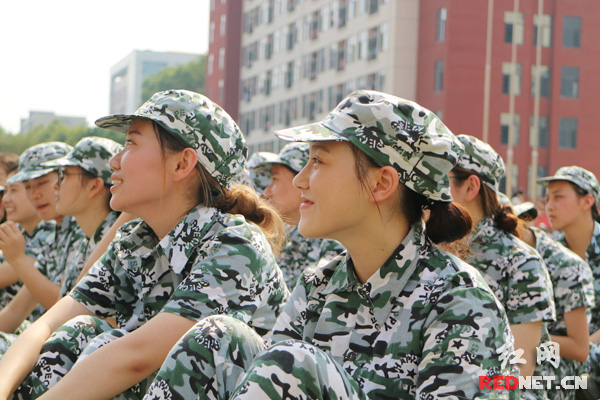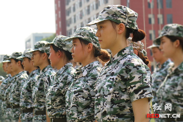 同學(xué)們?cè)谡J(rèn)真聽(tīng)教官講述齊步走訓(xùn)練科目要點(diǎn)。 “向左轉(zhuǎn)、向右轉(zhuǎn)……”在響亮的口號(hào)聲和吶喊聲中,湖南女子學(xué)院的同學(xué)們,今天開(kāi)始了上大學(xué)的第一課。 -