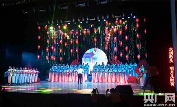 “中秋音樂(lè)詩(shī)會(huì)”在大合唱《水調(diào)歌頭·明月幾時(shí)有》的歌聲中拉開序幕。名家讀詩(shī)、作者自吟自唱、主持人輪流朗誦、讀詩(shī)班集體誦讀……現(xiàn)場(chǎng)品讀了近40首詩(shī)作。期間還穿插了大型合唱、旗袍表演、歌曲演唱、鋼琴古箏等樂(lè)器演奏等,豐富多彩的節(jié)目讓近4個(gè)小時(shí)的讀詩(shī)會(huì)精彩紛呈。