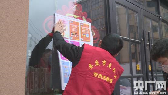 志愿者在社區(qū)張貼疫情防控宣傳海報(bào)(央廣網(wǎng)發(fā) 通訊員章娜 攝)