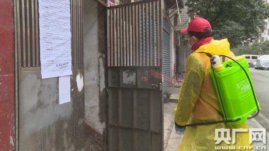 志愿者對(duì)重點(diǎn)區(qū)域進(jìn)行消毒(央廣網(wǎng)發(fā) 通訊員章娜 攝)