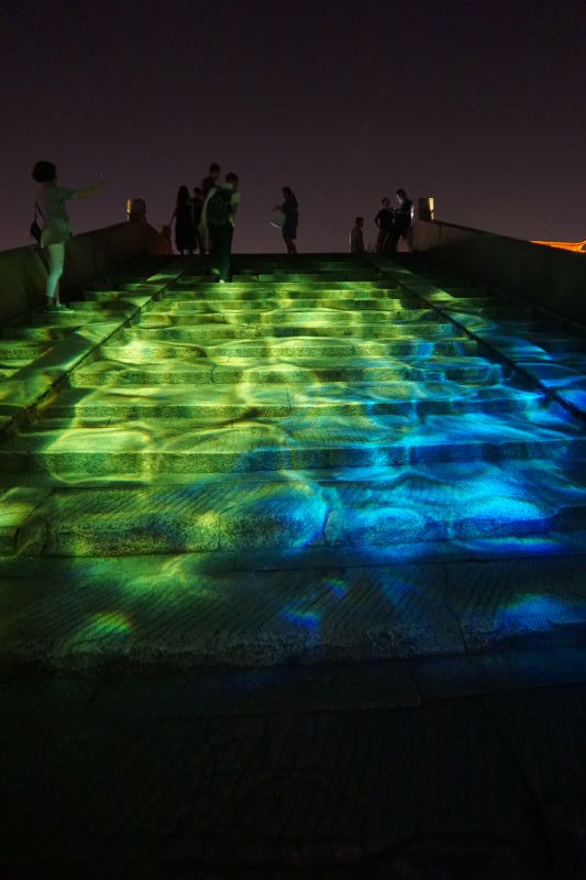 投射在清名橋斑駁的階梯上