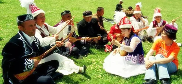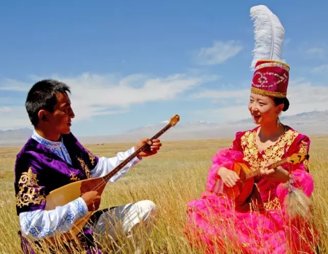 阿肯彈唱是哈薩克族人民悠久的民間傳統(tǒng)藝術(shù)形式。每逢阿肯彈唱會,遠(yuǎn)近的人們身著盛裝,騎著駿馬,彈著冬不拉載歌載舞來到鮮花盛開的的草原上,各路歌手登場獻(xiàn)藝,聽眾們喝彩助威,經(jīng)常是通宵達(dá)旦一連數(shù)日。
