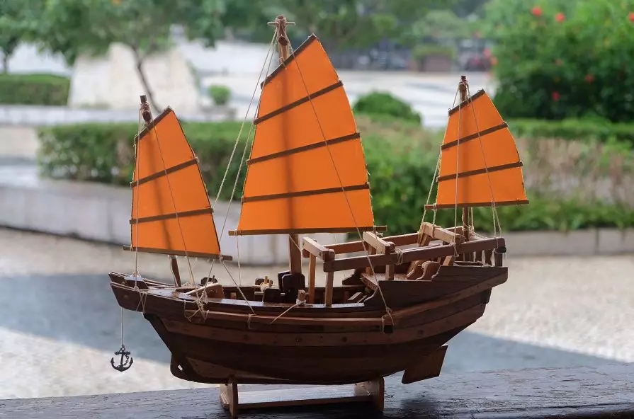 一艘小小的三桅帆船,麻雀雖小五臟俱全,里面有廁所、儲(chǔ)蓄淡水區(qū)、廁所、廚房區(qū),還科學(xué)地設(shè)置了欄桿供漁民曬咸魚(yú),滿足漁民出海捕魚(yú)一切的生活需求。