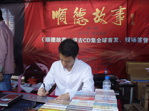 《順德故事》是佛山著名粵語(yǔ)演播藝術(shù)家梁子剛的作品。該作品是他在2006年應(yīng)順德區(qū)文體廣電新聞出版局的邀請(qǐng),與順德區(qū)作家協(xié)會(huì)主席李健明聯(lián)袂創(chuàng)作文稿,隨后親自編播的地方風(fēng)物講古作品。
