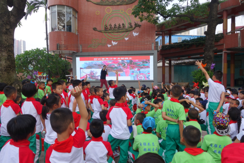 當日,主持人陳健光進行了《嶺南龍舟巡禮》的講座,與在座的老師、同學分享珠三角各地龍船文化,包括廣州番禺沙亭龍舟乸、廣州珠村起龍船等嶺南龍舟特色文化。一個小時的演講和交流受到了老師、同學以及家長的一致好評。