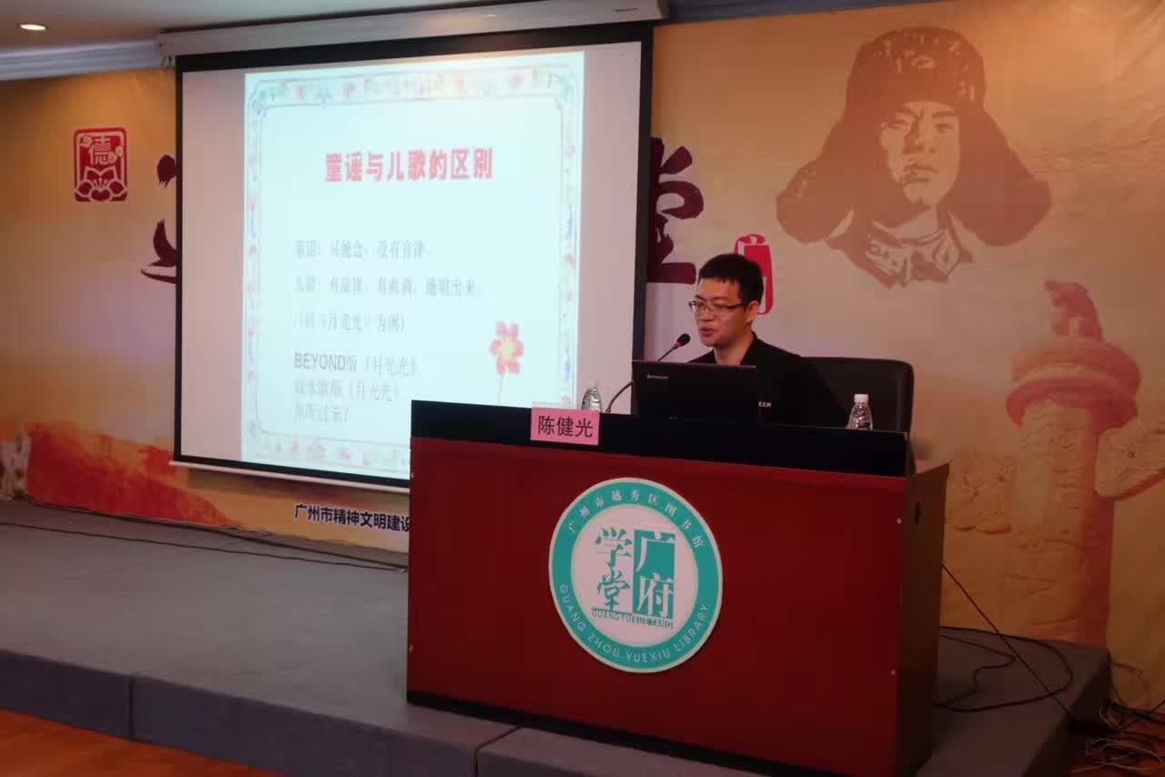主持人陳健光與大家分享“童謠與兒歌的區(qū)別”