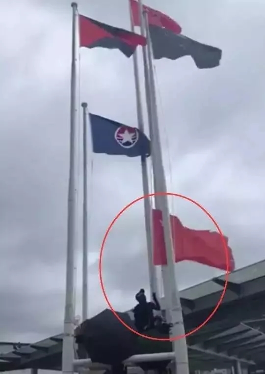 △ 愛(ài)國(guó)愛(ài)港人士自發(fā)重新升起國(guó)旗 | 圖片來(lái)源:環(huán)球網(wǎng)